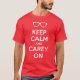 Keep Calm and Carey On t-shirt with white lettering and glasses.