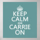 This reads Keep Calm and Carrie On, in the style of the classic keep calm poster. It makes a range of different and fun gifts for that special Carrie in your life, perfect for birthdays and christmas gifts with that personal touch. It's also popular for bachelorette and hen parties.