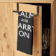 A Keep Calm and Carry On style saying black decor on a custom gift. A perfect last minute gift to someone special on your list.