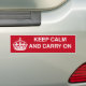 Bumper sticker with the phrase "Keep Calm And Carry On" written on it with a royal crown.