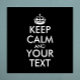 Make your own Custom Keep Calm and Carry On Design by adding text yourself. It’s very popular slogan for fun lover people and everyone.