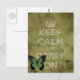 Keep Calm and Carry On Green Grunge With Butterfly Postcard