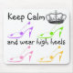Keep calm and carry on mousepad for a female of any age who loves shopping for clothes.  All women who love shoes will enjoy this fashionista version of the Keep Calm and Carry On motto - originally a motivational theme from British war time posters. Keep calm and wear high heels, especially pretty pastel shoes like these.
