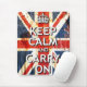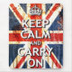 A vintage, distressed Union jack background to the wartime poster phrase 'Keep calm and Carry On'.