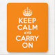 Keep Calm and Carry On vintage-style design against a bright rainbow orange background.