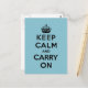 Blue and black keep calm and carry on To change size has your taste. This design makes reference to the famous poster appeared during the Second World War.