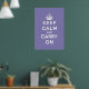 Purple and white keep calm and carry on. To change size has your taste. This design makes reference to the famous poster appeared during the Second World War.