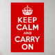Red and white "Keep Calm and Carry On" modern version of classic poster.