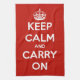 A vintage WW2 British motivational poster recreated in traditional red with white text and royal crown on a high quality kitchen towel. Makes a great housewarming gift.