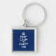 Keep Calm and Carry On Square Keychain - Dk Blue