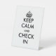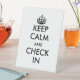 Keep calm and check in funny counter Pedestal Sign for hotel desk. Also great for other places like rooms, shop, business, restaurant, B&B etc.