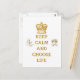This design features a golden "3-D" crown over the words "Keep Calm and Choose Life ". Feel free to add your own words/pictures/background colour to this item via Zazzle's great customisation tools!