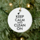 Keep Calm and Clean On Broom Custom Ceramic Ornament