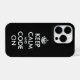 Keep calm and code on custom iPhone 14 pro Case. Make your own personalised keep calm meme quote. Black or custom background colour. Funny template design with modern typography and crown.