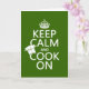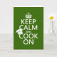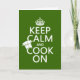 This reads Keep Calm and Cook On, in the style of the classic keep calm poster. The C of Cook is wearing a chef's hat. It makes a fun range of gifts, perfect for anyone who loves to cook or bake.