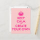 Hello and welcome, create and customise your own "keep calm" design for this one is unique! Replace the words "keep calm and create your own" by the word of your choice and choose the background colour you want! You can imagine and do everything!! ex: "keep calm and carry on" "keep calm and dance on" "keep calm and love me" ... have fun, let your creativity! If you have a problem, do not hesitate to contact me: grafik.prod@gmail.