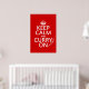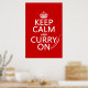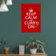 This reads Keep Calm and Curry On, in the style of the classic keep calm poster. There is a silhouette of a chilli beside the words. It's a beautiful and striking design, which makes wonderful gifts for anyone who loves curry, whether to eat or cook. Great for chefs, and restaurants, as well as amateur cooks.
