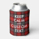 "Keep Calm and ... " customise this stylish red plaid can cooler with a creative phrase of your choice. Click "Personalise" to test a few phrases and see how it looks. Salut et ciao!