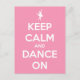 Keep Calm and Dance On Pink and White Postcard