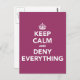Keep Calm and Deny Everything Postcard
