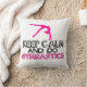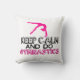 Gymnastics pillow "Keep Calm and Do Gymnastics"... the text is in black and pink and it has a gymnast silhouette.