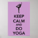 Keep Calm and do Yoga Poster in all black with a lavender background and a silhouette of someone of someone doing Yoga.
