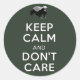 Keep Calm and Don't Care Classic Round Sticker