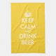 Keep calm and drink beer kitchen towels for wiping spills and stains. Funny parody quote for beer lover. Vintage yellow and white Keep calm and carry on typography with crown. Customisable template design. Fun favour gift idea for men and women who love drinking beers. Personalise it and make your own funny Keep calm and carry on parody. Cute kitchen accessories for tasting party, Birthday, bridal shower, housewarming, wedding, engagement. Custom keepcalmandcarryon theme. Customisable background colour. Also nice for bar, pub, cafe, restaurant etc.