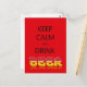 A funny card urging you to keep calm and drink bee. A spoof on the internet meme.