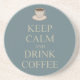 This product is made with the saying keep calm and drink coffee with a cute coffee cup along the top