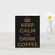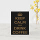Of the popular "keep calm" theme, this card boldly proclaims to keep calm and drink coffee (designed in coffee colours!)