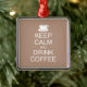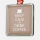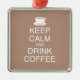 A funny take on the "KEEP CALM" WWII saying, displayed on a square holiday ornament. A perfect Christmas gift for the coffee lover! Latte Brown & White Design.