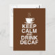 Keep Calm and Drink Decaf Coffee Gift Ideas Fun Postcard