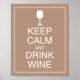 Latte tan brown wine glass "Keep Calm and Drink Wine" design is a parody of the "Keep Calm" WWII era poster.