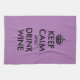 Keep calm and drink wine funny kitchen towel gift. Custom colour design with modern typography and crown logo. Make your own humourous meme. Fun for home, office or business. Purple and black example. Perfect for wine lovers!