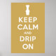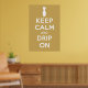 A version of the famous "Keep calm and carry on" World War II effort poster, dedicated to vapers who love dripping. The slogan is Keep Calm and Drip On, it features a drip tip on top and the colour is golden. Vape on, drip on and be inspired, ecig lovers!