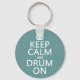 This reads Keep Calm and Drum On, in the style of the classic keep calm poster. It's a great simple design, popular and great gift item for the drummer in your life.