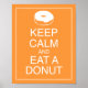 A humourous take on the "Keep Calm" WWII saying. This "Keep Calm and Eat a Doughnut" art print is a fun unique gift for your honey with a sweet tooth and a sense of humour. Tangerine orange and white colours.