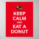 Keep calm and eat a doughnut. Change background colour, poster size and material. Get it to your home or for your coffee shop.