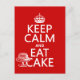 This reads Keep Calm and Eat Cake, in the style of the classic keep calm poster. There is a beautiful cake on a stand by the words. It's a lovely design, and fabulous advice in times of crisis. Great gifts for anyone who needs more cake in their life.
