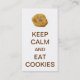This business card features a photograph of a chocolate chip cookie, with the text, "Keep Calm and Eat Cookies". The text on the back features your business information, and can be customised to fit your needs.