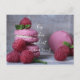 A beautiful elegant photo of raspberry macarons, fresh raspberries and mint leaves. Words "Keep calm and eat macarons"