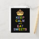 Keep Calm and Eat Sweets postcard. Cute postcard says Keep Calm and Eat Sweets in colourful letters with a crown on a black background.