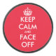 Keep calm and face off custom hockey puck gift. Red or custom colour. Funny presents for sporty friends.