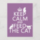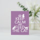 This is the classic "Keep Calm and Carry On" war poster reworded to "Keep Calm and Feed The Cat". It's written in white with a background colour that you can change as you please. I've kept the crown at the top, but added silhouettes of cats sitting on and near the letters.