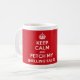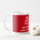 A mug with the saying "Keep Calm and Fetch My Smelling Salts" printed on it in red.