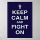 Keep Calm and Fight On! This is a parody of the British phrase "Keep calm and carry on". There is a fist instead of the crown. This is a take on that with a rebellious twist.