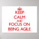 Use the search tool at my store to find other Being Agile merchandise. Keep Calm and focus on Being Agile products available on tshirts,sweatshirts,kids shirts, infant onsies, stickers, magnets, and much more Being Agile clothing fully customisable to your specifications. If you like what you see, please link to my store (www.zazzle.com/shirtsforall) or email a friend.