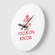 Purchased this online and it got delivered quickly. It was a present for my Dads 70th birthday. He loves clocks so decided to get him one with something written on it. Battery went in and it started working straight away. Dads had no issues with it. Printing was just how it came up online.