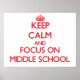 Use the search tool at my store to find other Middle School merchandise. Keep Calm and focus on Middle School products available on tshirts,sweatshirts,kids shirts, infant onsies, stickers, magnets, and much more Middle School clothing fully customisable to your specifications. If you like what you see, please link to my store (www.zazzle.com/shirtsforall) or email a friend.